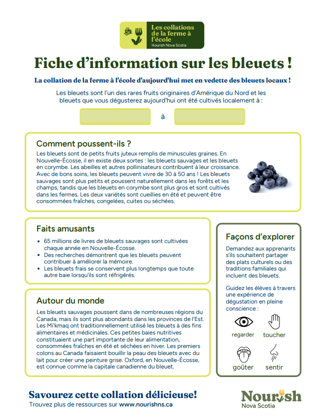 Découvrez nos ressources Farm to School Snack concernant les bleuets ici.