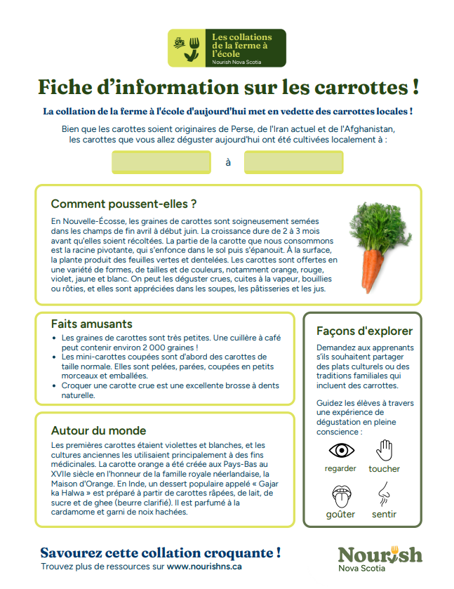 Découvrez nos ressources Farm to School Snack concernant les carrottes ici.