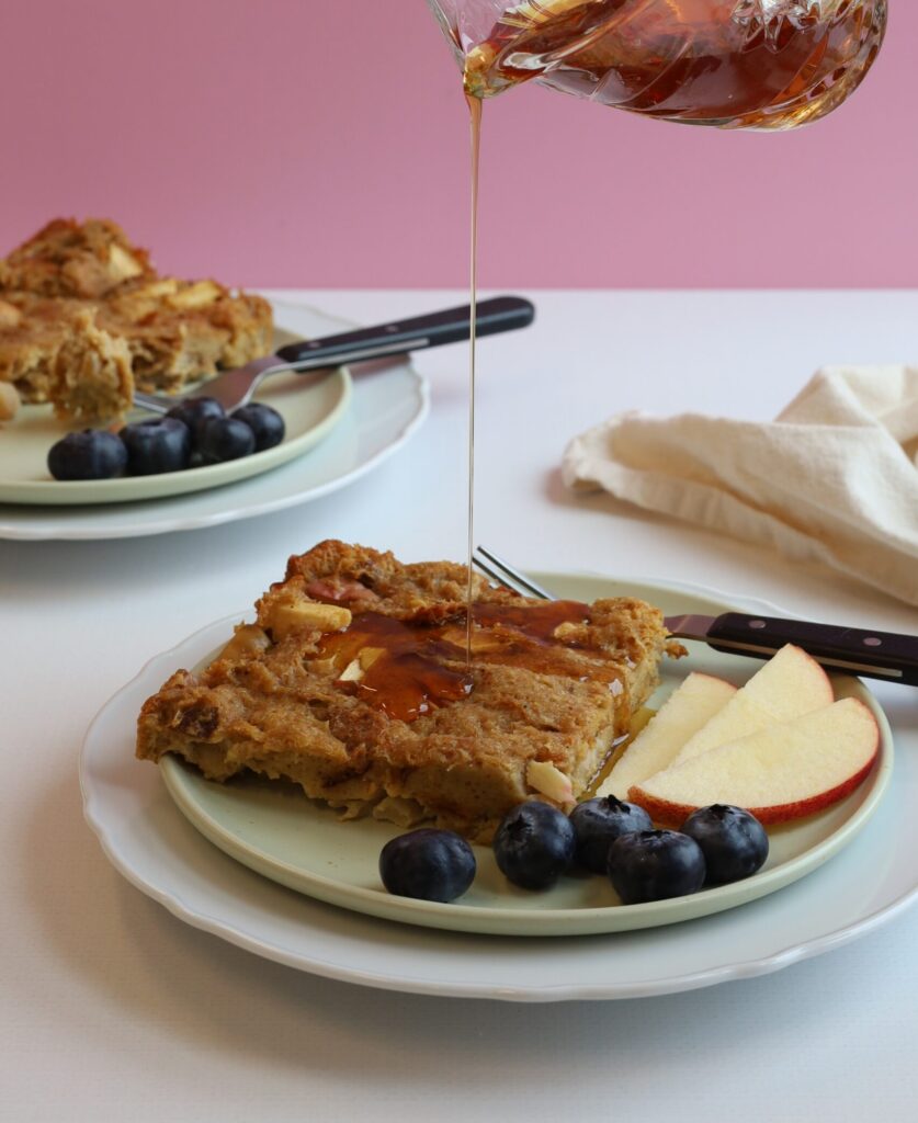 Heat the maple syrup with the remaining margarine. Spoon the mixture over the pears in the pan.