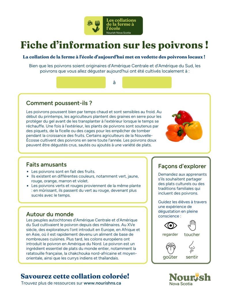 The Farm to School Snack Information Sheets highlight how each vegetable and fruit is grown, how it is enjoyed around the world, fun facts, and creative ways to explore the snack. To enhance the taste testing experience, these resources can be shared during morning announcements or read aloud by the classroom teacher as students enjoy their snack.