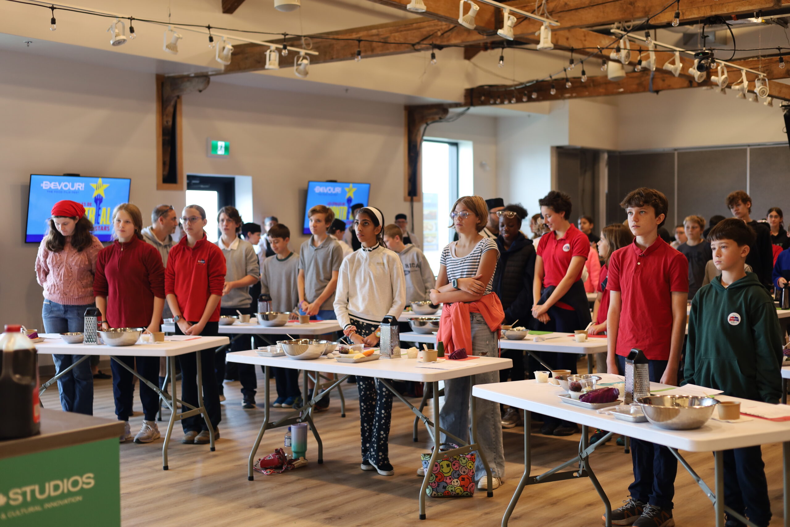 The Big Picture Program brings big ideas about food to the big screen and invites school children from across Nova Scotia to an interactive film screening experience at the Devour! Studios. This initiative has already reached more than 4,500 students across Nova Scotia, sparking curiosity and conversation about the food systems that shape their lives. This year’s lineup featured three standout films: Seaweed Stories, Future Council, and Priced to Thrill. During the post-film discussion for Priced to Thrill, students had the unique opportunity to engage directly with the filmmaker Stephanie Joline and the Gateway Meat Market co-owner Tanya Pelley, diving into the story behind the film and sparking thoughtful dialogue about local food systems and community connections.